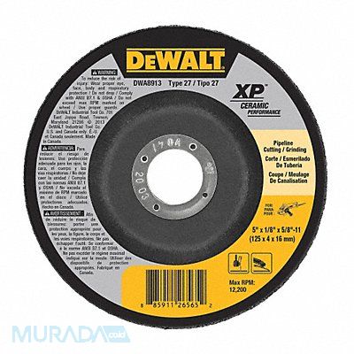 Depressed Center Wheels Abrasive Wheel Type Type 27 Abrasive Wheel Diameter 5 in Thickness 0.125 in Arbor Hole Size 5/8-11 in Abrasive Material Ceramic Abrasive Grit 24 Max RPM 12 200 RPM Series XP Ceramic Grade Coarse Application General Weld Hard Alloys Metal Pipelining Stainless Steel Structural Steel Thin-Heavy Wall Pipe