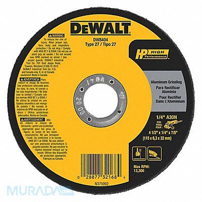 Depressed Center Wheels Abrasive Wheel Type Type 27 Abrasive Wheel Diameter 4 1/2 in Thickness 0.25 in Arbor Hole Size 7/8 in Abrasive Material Aluminum Oxide Abrasive Grit 30 Max RPM 13 300 RPM Series High Performance Grade Very Coarse Application Aluminum