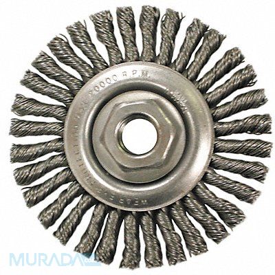 Wire Wheel Brush Wire Wheel Brush Bristle Type Twisted Wire Brush Dia 4 in Mounting Type Arbor Hole Arbor Hole Size 5/8 In.-11 Abrasive Shank Size No Shank Wire Dia 0.02 in Bristle Trim Length 7/8 in Abrasive Material Steel Face Width 3/16 in Max RPM 20 000 RPM For Use With General Purpose Cleaning