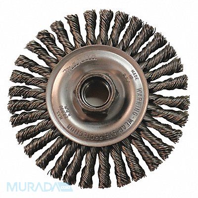Wire Wheel Brush Wire Wheel Brush Bristle Type Twisted Wire Brush Dia 4 in Mounting Type Arbor Hole Arbor Hole Size 5/8 In.-11 Abrasive Shank Size No Shank Wire Dia 0.02 in Bristle Trim Length 3/4 in Abrasive Material Carbon Steel Face Width 3/16 in Max RPM 12 500 RPM For Use With Makita Angle Grinders