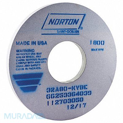 Straight Grinding Wheel Abrasive Wheel Type Type 1 Abrasive Wheel Diameter 14 in Thickness 1 in Arbor Hole Size 5 in Abrasive Material Aluminum Oxide Abrasive Grit 80 Abrasive Wheel Hardness K Max RPM 1 800 RPM Series 32A Specification 32A80-KVBE Grade Medium Bond Type Vitrified