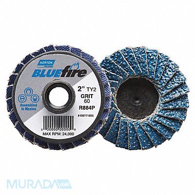 J5076 Flap Disc Abrasive Type Coated Abrasive Material Zirconia Alumina Grade Coarse Backing Plate Material Plastic Connector Size Not Applicable Connector Type Threaded Hole Density Rating Standard Flap Disc Type Type 27 Overall Diameter 3 in Quick Change System TS Series BlueFire R884P Backing Material Cotton Backing Weight Y Coating Coverage Semi-Open Grit P80 Maximum Operating Speed 30 000 RPM Color Blue
