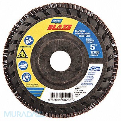 Flap Disc Abrasive Type Coated Abrasive Material Ceramic Grade Coarse Backing Plate Material Plastic Connector Size 7/8 in Connector Type Unthreaded Hole Density Rating Standard Flap Disc Type Type 27 Overall Diameter 5 in Series Blaze R980P Backing Material Polyester Backing Weight Y Grit 80 Maximum Operating Speed 12 000 RPM Color Orange Features Performance Coated Trimmable Resistance Properties Fray