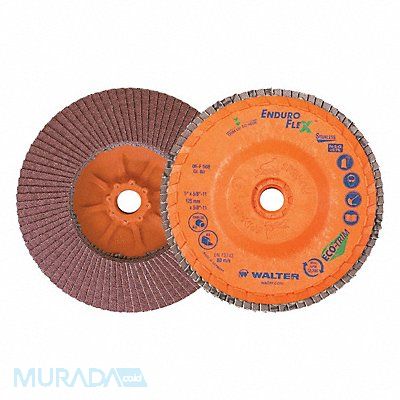 Flap Disc Abrasive Type Coated Abrasive Material Aluminum Oxide Grade 80 Backing Plate Material Eco-Trim Connector Size 5/8 In.-11 Connector Type Threaded Hole Density Rating Standard Flap Disc Type Type 27 Overall Diameter 5 in Quick Change System TS Series ENDURO-FLEX Stainless Backing Material Eco-Trim Backing Weight Not Applicable Coating Coverage Not Applicable Grit 80 Maximum Operating Speed 12 200 RPM Features Trimmable