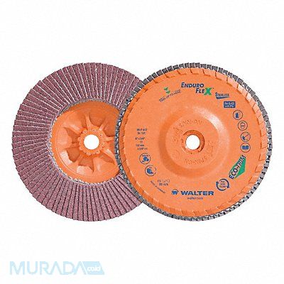 Flap Disc Abrasive Type Coated Abrasive Material Aluminum Oxide Grade 120 Backing Plate Material Eco-Trim Connector Size 5/8 In.-11 Connector Type Threaded Hole Density Rating Standard Flap Disc Type Type 27 Overall Diameter 6 in Quick Change System TS Series ENDURO-FLEX Stainless Backing Material Eco-Trim Backing Weight Not Applicable Coating Coverage Not Applicable Grit 120 Maximum Operating Speed 10 200 RPM Features Trimmable