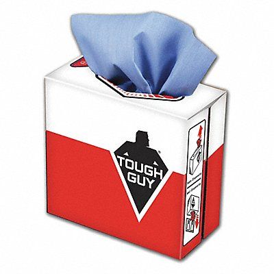 Dry Wipe Wipe Type General Purpose Wipe Dispenser Box Product Series Tough Guy G80 Absorbency Level Super Heavy Wet Strength Level Excellent Blue Minimum Cleanroom Standards None Hydro-entangled (HEF) Lint Level Low Lint Roll Length No Roll Sheet Length 16 1/2 in Sheet Width 9 in Number of Sheets 80 Package Quantity 5