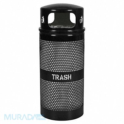 Trash Can Round Dome 34 gal Black Height 44 in Width/Diameter 18 in Metal Steel Powder Coated Outdoor Stationary Lid Included Lift Up None Wall or Free-Standing