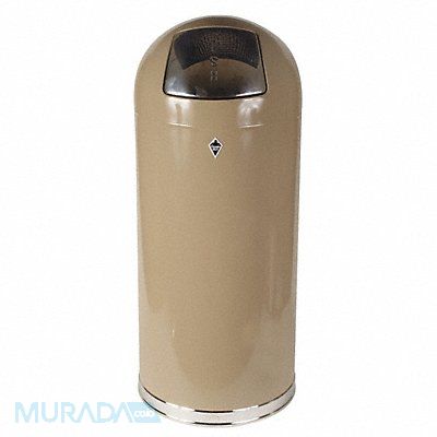 Fire-Resistant Trash Can Round Dome with Push Door 15 gal Beige Height 36 1/2 in Width/Diameter 15 1/4 in Metal Steel Powder Coated Indoor/Outdoor Stationary Lid Included Hinged None Free-Standing