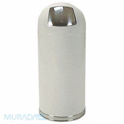 Fire-Resistant Trash Can Round Dome with Push Door 15 gal White Height 36 1/2 in Width/Diameter 15 1/4 in Metal Steel Powder Coated Indoor/Outdoor Stationary Lid Included Hinged None Free-Standing