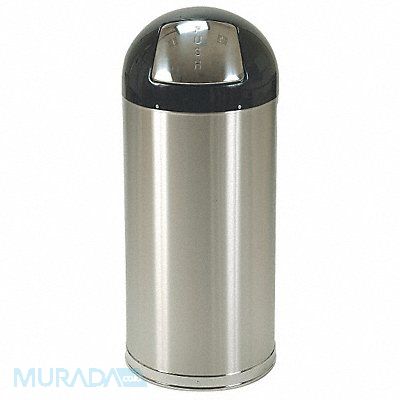 Fire-Resistant Trash Can Round Dome with Push Door 15 gal Silver Height 36 1/2 in Width/Diameter 15 1/4 in Metal Steel Brushed Indoor/Outdoor Stationary Lid Included Hinged None Free-Standing