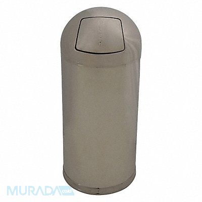 Trash Can Round Dome with Push Door 15 gal Silver Height 36 1/2 in Width/Diameter 6 1/4 in Metal Steel Brushed Indoor/Outdoor Stationary Lid Included Hinged None Free-Standing