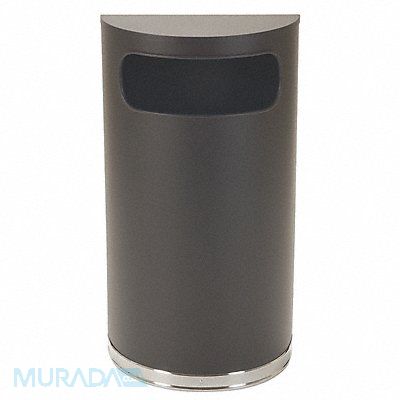 Wastebasket Half-Round Flat with Side Opening 9 gal Black Height 32 1/4 in Width/Diameter 17 3/4 in Depth 8 3/4 in Metal Stainless Steel Powder Coated Indoor/Outdoor Stationary Lid Included Lift Up None Free-Standing