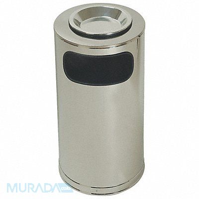 Ashtray/Trash Can Round Flat with Side Opening 12 gal Silver Height 28 1/4 in Width/Diameter 15 in Metal Steel Mirror Indoor/Outdoor Stationary Lid Included Lift Up None Free-Standing