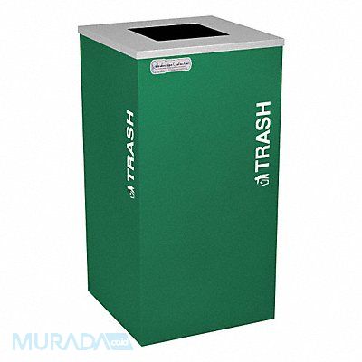 Trash Can Square Flat with Top Opening 24 gal Green Height 30 in Width/Diameter 15 3/4 in Depth 15 3/4 in Metal Steel Powder Coated Indoor Stationary No Lid None None Free-Standing