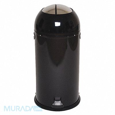 Step Can Round Dome 10 gal Black Height 31 1/2 in Width/Diameter 13 3/4 in Metal Steel Powder Coated Indoor/Outdoor Stationary Lid Included Hinged Foot Pedal Free-Standing