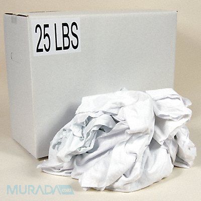 Cloth Rag Cleaning Cloth Style Sheeting Material Cotton Cleaning Cloth Color White Cleaning Cloth Condition Reclaimed Weight 25 lb Estimated Piece Count 250 to 300 Package Type Box Size Varies Lint Level Standard Primary Cleaning Application General Purpose Cleaning