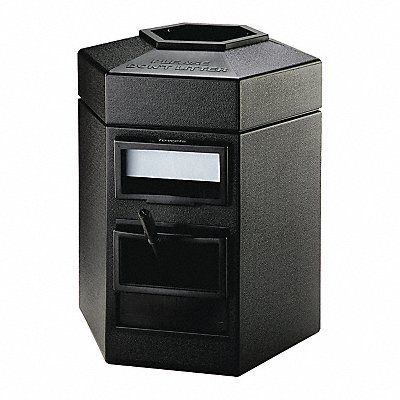 Cleaning Can/Trash Can Hexagon Flat with Top Opening 35 gal Black Height 31 in Width/Diameter 25 in Depth 23 1/4 in Plastic Polyethylene Molded Polyethylene Outdoor Stationary Lid Included Snap Fit Free-Standing