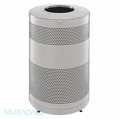 Trash Can Round Flat with Top Opening 51 gal Gray Height 35 1/2 in Width/Diameter 24 in Metal Stainless Steel Powder Coated UV Protectant Outdoor Stationary No Lid None None Free-Standing