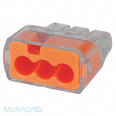 Push-In Connector Color Orange For Conductor Material Copper Tin-Plated Copper For Minimum Wire Size - Stranded 18 AWG For Maximum Wire Size - Stranded 12 AWG Housing Material Polycarbonate Maximum Operating Temperature 221 Degrees F Maximum Voltage 600 V Overall Height 0.38 in Overall Length 0.78 in Overall Width 0.69 in Connector Type 3 Port UL 94 Flammability Rating V-2 Number of Ports 3 RoHS Compliant Yes Standards CSA UL Compatible with Product Type Twist-On Wire Connector