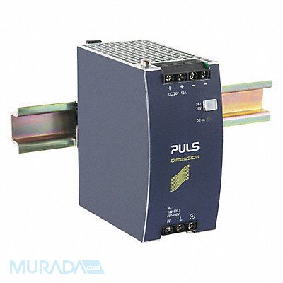 DC Power Supply Input Voltage 100 to 120 V AC 200 to 240 V AC Output Voltage 24 to 28V DC Power Rating 240W Output Amps 10.0 Mounting DIN Rail Switching Case Material Metal Case Height 124 mm Width 60 mm Depth 117 mm Series Dimension Hz 50 to 60 Hz Phase - Electrical Single Peak Amps 12 IP Rating 20 Output Noise 50mV Hold Up Time 46 msec Status Indicator LED Features High Efficiency and Long Lifetime Operating Temp Range -25 Degrees to 70 Degrees C