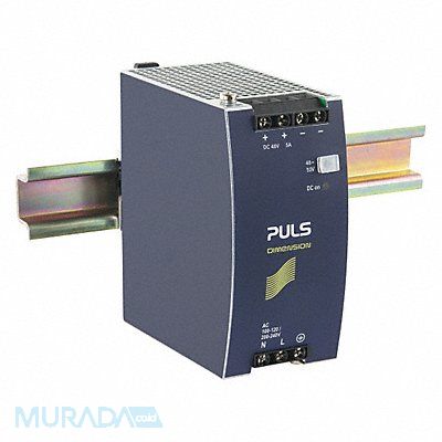 DC Power Supply Input Voltage 100 to 120 V AC 200 to 240 V AC Output Voltage 48 to 52V DC Power Rating 240W Output Amps 5.0 Mounting DIN Rail Switching Case Material Metal Case Height 124 mm Width 60 mm Depth 117 mm Series Dimension Hz 50 to 60 Hz Phase - Electrical Single Peak Amps 6 IP Rating 20 Output Noise 100mV Hold Up Time 46 msec Status Indicator LED Features High Efficiency and Long Lifetime Operating Temp Range -25 Degrees to 70 Degrees C