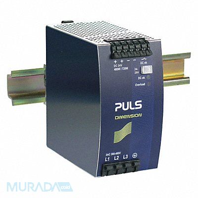 DC Power Supply Input Voltage 380 to 480 V AC Output Voltage 24 to 28V DC Power Rating 480W Output Amps 20 Mounting DIN Rail Switching Case Material Metal Case Height 124 mm Width 65 mm Depth 127 mm Series Dimension Hz 50 to 60 Hz Phase - Electrical Three Peak Amps 30 IP Rating 20 Output Noise 100mV Hold Up Time 22 msec Status Indicator LED/DC OK Signal Features High Efficiency and Long Lifetime Operating Temp Range -25 Degrees to 70 Degrees C