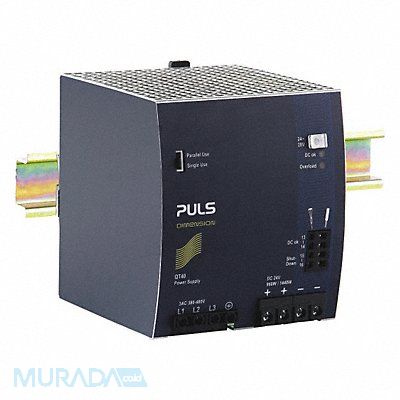 DC Power Supply Input Voltage 380 to 480 V AC Output Voltage 24 to 28V DC Power Rating 960W Output Amps 40.0 Mounting DIN Rail Switching Case Material Metal Case Height 124 mm Width 110 mm Depth 127 mm Series Dimension Hz 50 to 60 Hz Phase - Electrical Three Peak Amps 60 IP Rating 20 Output Noise 100mV Hold Up Time 25 msec Status Indicator LED/DC OK Signal Features High Efficiency and Long Lifetime Operating Temp Range -25 Degrees to 70 Degrees C