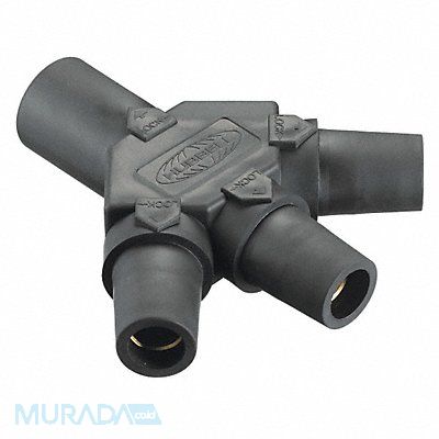 Triple Connector Contact Material Brass Current Rating 400 A Gender Configuration Male-Female-Female-Female Housing Color Black Housing Material Thermoplastic Elastomer Voltage Rating 250V DC 600V AC NEMA Enclosure Rating 12 3R 4X Product Type 3-Fer Compatible with Series 16 Maximum Operating Temperature 75 Degrees C Minimum Operating Temperature -40 Degrees C Overall Height 5.88 in Overall Length 5.78 in Overall Width 1.48 in