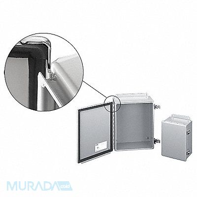 Enclosure NEMA Rating 12 13 Material of Enclosure Carbon Steel 12 in Hinged Enclosure Cover Type Solid / Clear Cover Solid Closure Method Quick Release Latch Finish ANSI 61 Polyester Powder Color Gray Depth 6.75 in Enclosure Cover Features Plated Latches Features Weld Nuts for Mounting Panel and Terminals Neoprene Gasket Height 14 in Interior Panel 32FR80 IP Rating 65 Metal Gauge 14/16 ga Wall Mounting Series A51 Standards CSA Certified cUL IEC UL Listed Width 12 in