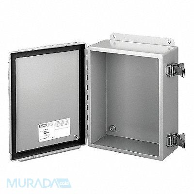 Enclosure NEMA Rating 12 13 Material of Enclosure Carbon Steel 4 in Hinged Enclosure Cover Type Solid / Clear Cover Solid Closure Method Quick Release Latch Finish ANSI 61 Polyester Powder Color Gray Depth 3 in Enclosure Cover Features Quick Release Latch Features Weld Nuts for Mounting Panel and Terminals Neoprene Gasket Height 6 in Interior Panel 32FR89 IP Rating 65 Metal Gauge 14/16 ga Wall Mounting Series A51 Standards CSA Certified cUL IEC UL Listed Width 4 in