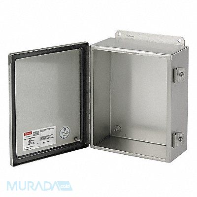 Enclosure NEMA Rating 12 3R 4 4X Material of Enclosure 316L Stainless Steel 6 in Hinged Enclosure Cover Type Solid / Clear Cover Solid Closure Method Screw-Down Clamps Finish Brushed Color Stainless Steel Depth 4 in Enclosure Cover Features Screw-Down Clamps Features Weld Nuts for Mounting Panel and Terminals Polyurethane Gasket Height 6 in Interior Panel 32FR66 IP Rating 66 Metal Gauge 14/16 ga Wall Mounting Series A51S Standards CSA Certified cUL IEC UL Listed