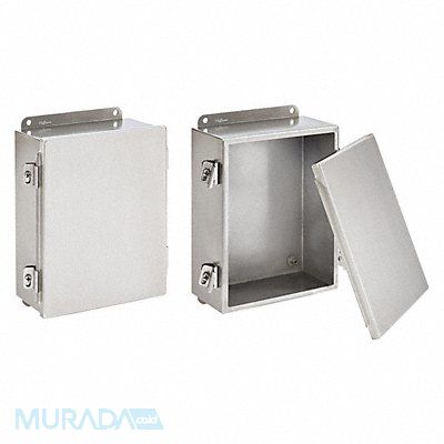 Enclosure NEMA Rating 12 3R 4 4X Material of Enclosure 304 Stainless Steel 8 in Lift Off Enclosure Cover Type Solid / Clear Cover Solid Closure Method Screwdown Clamps Finish Brushed Color Stainless Steel Depth 4 in Enclosure Cover Features Clamps Features Weld Nuts for Mounting Panel and Terminals Polyurethane Gasket Height 10 in Interior Panel 32FR67 IP Rating 66 Metal Gauge 14/16 ga Wall Mounting Series A51S Standards CSA Certified cUL IEC UL Listed Width 8 in