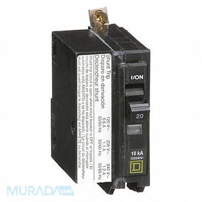 Miniature Circuit Breaker Amps 20 A AC Voltage Rating 120/240V AC Circuit Breaker Type Shunt Trip Number of Poles 1 DC Voltage Rating 48V DC Circuit Breaker Actuator Paddle Circuit Breaker Mounting Style Bolt On Compatible Panelboard/Load Center Series QO Phase Single Series QOB Max AIR Rating 10kA at 120/240V AC For Use With Square D NQOD Panelboards Terminal Connection Pressure Plate Frame Size 100A/QO Length 3 in Width 1.5 in Depth 2.91 in Min Operating Temp 104 Degrees F