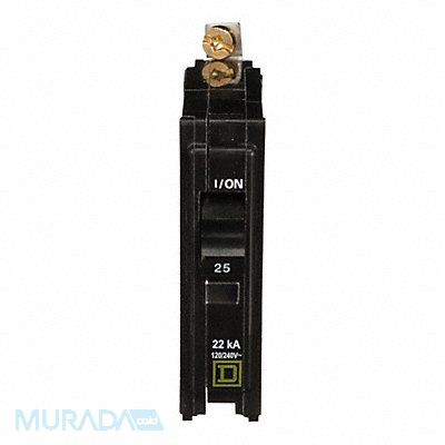 Miniature Circuit Breaker Amps 25 A AC Voltage Rating 120/240V AC Circuit Breaker Type High Interrupting Capacity Number of Poles 1 DC Voltage Rating Not Rated Circuit Breaker Actuator Paddle Circuit Breaker Mounting Style Bolt On Compatible Panelboard/Load Center Series QO Phase Single Series QOB Max AIR Rating 22kA at 120/240V AC For Use With Square D NQOD Panelboards Terminal Connection Pressure Plate Frame Size 100A/QO Length 3 in Width 0.75 in Depth 2.91 in
