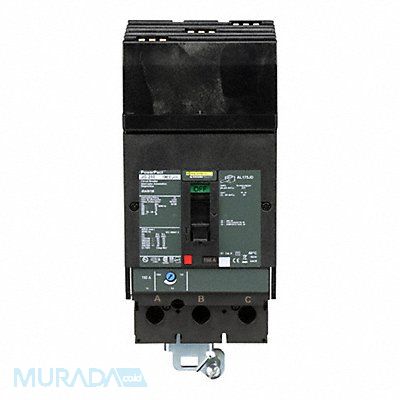 Molded Case Circuit Breaker 150 A Amps AC Voltage Rating 600V AC Max AIR Rating 25kA at 240V AC For Use With I Line Panelboards Series JG High Amp Trip Setting 1 500 A Low Amp Trip Setting 750 A Circuit Breaker Type Standard Number of Poles 3 DC Voltage Rating 500V DC Terminal Connection Lug Trip Type Thermal Magnetic Phase Three Instantaneous Trip Adjustable Phase Connection ABC Frame Size 250A/JG Circuit Breaker Mounting Style I-Line Height 11.48 in Width 4.48 in
