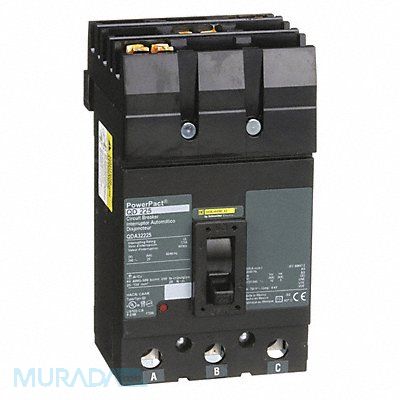 Molded Case Circuit Breaker 225 A Amps AC Voltage Rating 240V AC Max AIR Rating 25kA at 240V AC For Use With I Line Panelboards Series QD High Amp Trip Setting 2 400 A Low Amp Trip Setting 1 200 A Circuit Breaker Type Standard Number of Poles 3 DC Voltage Rating Not Rated Terminal Connection Lug Trip Type Thermal Magnetic Phase Three Instantaneous Trip Fixed Phase Connection ABC Frame Size 250A/QD Circuit Breaker Mounting Style I-Line Height 6.47 in Width 4.5 in