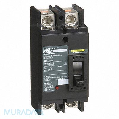 Molded Case Circuit Breaker 200 A Amps AC Voltage Rating 240V AC Max AIR Rating 25kA at 240V AC For Use With - Series QD High Amp Trip Setting 2 400 A Low Amp Trip Setting 1 200 A Circuit Breaker Type Standard Number of Poles 2 DC Voltage Rating Not Rated Terminal Connection Lug Trip Type Thermal Magnetic Phase Single Instantaneous Trip Fixed Phase Connection Not Applicable Frame Size 250A/QD Circuit Breaker Mounting Style Free Standing Height 6.47 in Width 4.5 in