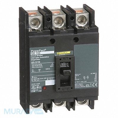 Molded Case Circuit Breaker 150 A Amps AC Voltage Rating 240V AC Max AIR Rating 25kA at 240V AC For Use With - Series QD High Amp Trip Setting 2 400 A Low Amp Trip Setting 1 200 A Circuit Breaker Type Standard Number of Poles 3 DC Voltage Rating Not Rated Terminal Connection Lug Trip Type Thermal Magnetic Phase Three Instantaneous Trip Fixed Phase Connection ABC Frame Size 250A/QD Circuit Breaker Mounting Style Free Standing Height 6.47 in Width 4.5 in Depth 3.93 in