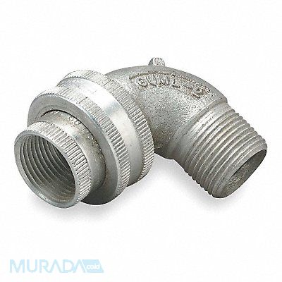 Union - Conduit to Box 90 Degrees Thread Gender Female to Male Trade Size 1/2 in Compatible Conduit Type IMC Threaded RMC Compatible Conduit Trade Size 1/2 in Ends - Hazardous Fittings 1/2 in FNPT x 1/2 in MNPT Overall Length 1 3/4 in Overall Height 3 in Overall Width 2 in Weight 0.16 lb Aluminum Finish Plain