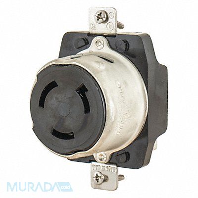 Locking Receptacle Current Rating 50 A Housing Color Black Housing Material Thermoset Mount Type Flush NEMA Enclosure Rating Not Rated NEMA Receptacle Configuration Non-NEMA Number of Poles 2 Number of Wires 3 Phase Single Polarized Yes Shrouded No Voltage Rating 125V AC Wiring Style Standard Grade Marine Grounding Grounded