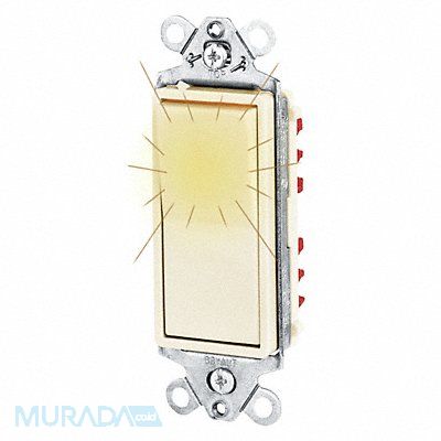 Illuminated Wall Switch Color Ivory Current Rating 20 A Illuminated Yes Switch Function Maintained Switch Type Single Pole Voltage Rating 120/277V AC Wiring Method Back Side Horsepower Rating 2 hp Locking Style Not Applicable Number of Switches 1 Standards UL/CSA Switch Style Rocker Wire Connection Type Screw Terminals Features Light on with Load Off Market Industrial Overall Height 1.66 in