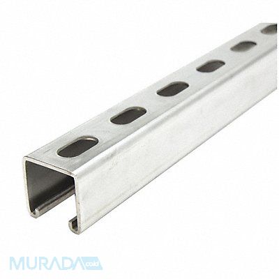 Strut Channel - Slotted Slot Type Slotted Size 1 5/8 in x 1 5/8 in Slot Length 1 1/8 in Slot Width 9/16 in Overall Length 10 ft Overall Height 1 5/8 in Overall Width 1 5/8 in 304 Stainless Steel Gauge 12 ga Hole Size 9/16 in x 1 1/8 in Load Capacity 330 lb Hole Spacing 2 in Center to Center Style Single Channel Type Slotted Slot Spacing 2 in Thickness 3/32 in Silver Finish Polished FS-200