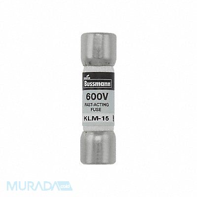 Fuse 15 A 600V AC 600V DC Class Midget KLM Series Nonindicating Fast Acting Body Style Cylindrical Nonrejection Interrupt Rating 100kA at 600V AC 50kA at 600V DC Fuse Size 1-1/2 in L x 13/32 in dia Length 1 1/2 in Diameter 13/32 in Equivalent Brand and Series Bussmann KLM Littelfuse KLKD Mersen ATM Equivalent Series ATM KLKD KLM Compatible Fuse Block Series BMM C2617 C5268 CHM HEB HPG HPS Body Material Melamine Single Element Standards CE CSA UL Listed