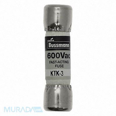 Fuse 3 A 600V AC Not Rated Class Midget KTK Series Nonindicating Fast Acting Body Style Cylindrical Nonrejection Interrupt Rating 100kA at 600V AC Fuse Size 1-1/2 in L x 13/32 in dia Length 1 1/2 in Diameter 13/32 in Equivalent Brand and Series Bussmann KTK Littelfuse KLK Mersen ATM Equivalent Series ATM KLK KTK Compatible Fuse Block Series BM BMM C2617 C5268 CHM HEB HET HEX HPG HPS OPM-1038 OPM-NG Body Material Melamine Single Element