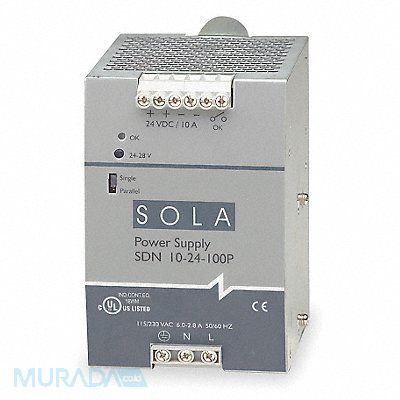 DC Power Supply Input Voltage 115 to 230 V AC Output Voltage 24V DC Power Rating 240W Output Amps 10 Mounting DIN Rail/Chassis Switching Case Material Metal Case Height 4.88 in Width 3.26 in Depth 4.55 in Series SDN Hz 47 to 63 Hz Phase - Electrical Single IP Rating 20 Output Noise Less Than 50mV Hold Up Time Greater Than 100 msec Status Indicator Green LED NEMA Rating 1