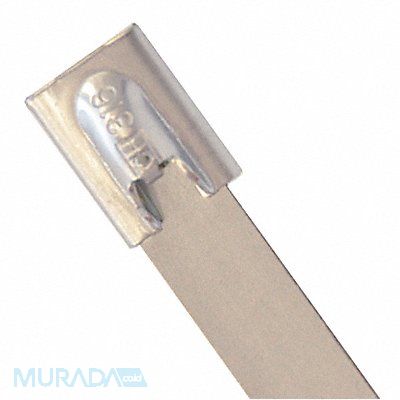 Cable Tie Standard Actual Length 30 in Width 0.63 in Nominal Length 30 in Locking Style Ball Lock Color Silver Basic Material - Cable Tie Metal Tensile Strength 800 lb Flame Retardant Impact Resistant Radiation Resistant UV Light Resistant Weather Resistant Extra Heavy Duty Nominal Max Bundle Dia 8 in Temp Range 0 Degrees to 1000 Degrees F Number of Straps 1 Flame Retardant Yes Metal Detectable Yes Outdoor Use Yes Plenum Rated No UL Type 2 Thickness 0.01 in