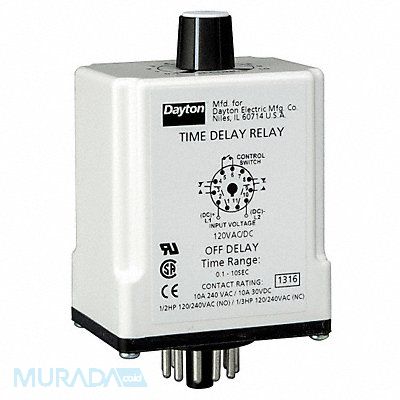 H7800 Single Function Time Delay Relay Adjustment Method Potentiometer Base Shape Octal Coil Voltage 240V AC Contact Form DPDT Contact Rating (AC) 10 A @ 240V Contact Rating (DC) 10 A @ 30V Current Rating 10 A Number of Delay Functions 1 Delay Function Off Delay Electrical Connection Socket Flat Pin Width Not Applicable IP Rating IP20 Input Voltage 240V AC Minimum Time Setting 0.6 sec Maximum Time Setting 60 sec Number of Pins 11 Sealing Enclosed Mounting Style Plug-In