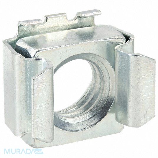 Spring Nut Nut Shape Cage Nut Nut Finish Zinc Plated Nut Material Steel Minimum Panel Thickness 0.028 in Maximum Panel Thickness 0.056 in Overall Width 0.64 in Overall Length 0.66 in Hole Center to Outside Edge 0.503 to 0.508 in System of Measurement Inch Thread Size 5/16 In.-18 Cage Finish Zinc Plated Cage Material Steel Clip-On Style Square For Use in Systems Automotive Blind Assemblies Cabinet Construction Electrical Equipment Grill Panels HVAC Server Racks