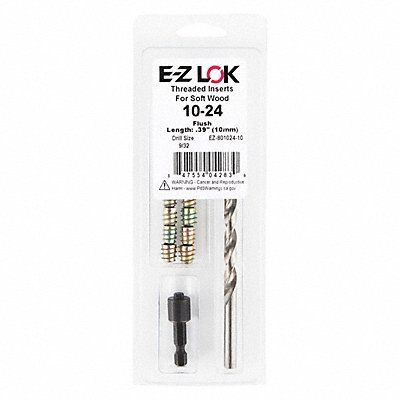 Threaded Insert for Soft Wood Insert Types Included Hex Drive Threaded Inserts Compatible Material Wood Drill Bit Sizes Included 9/32 in Insert Length 25/64 in Number of Inserts 10 Number of Pieces 12 Number of Sizes 1 System of Measurement Inch Thread Size #10-24 Insert Outside Diameter 0.429 in