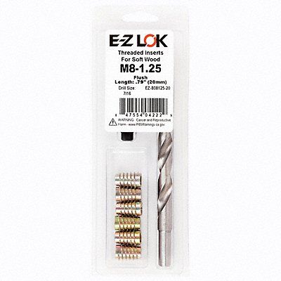 Threaded Insert for Soft Wood Insert Types Included Hex Drive Threaded Inserts Compatible Material Wood Drill Bit Sizes Included 7/16 in Insert Length 51/64 in Number of Inserts 6 Number of Pieces 8 Number of Sizes 1 System of Measurement Inch/Metric Thread Size M8-1.25 Insert Outside Diameter 8 mm